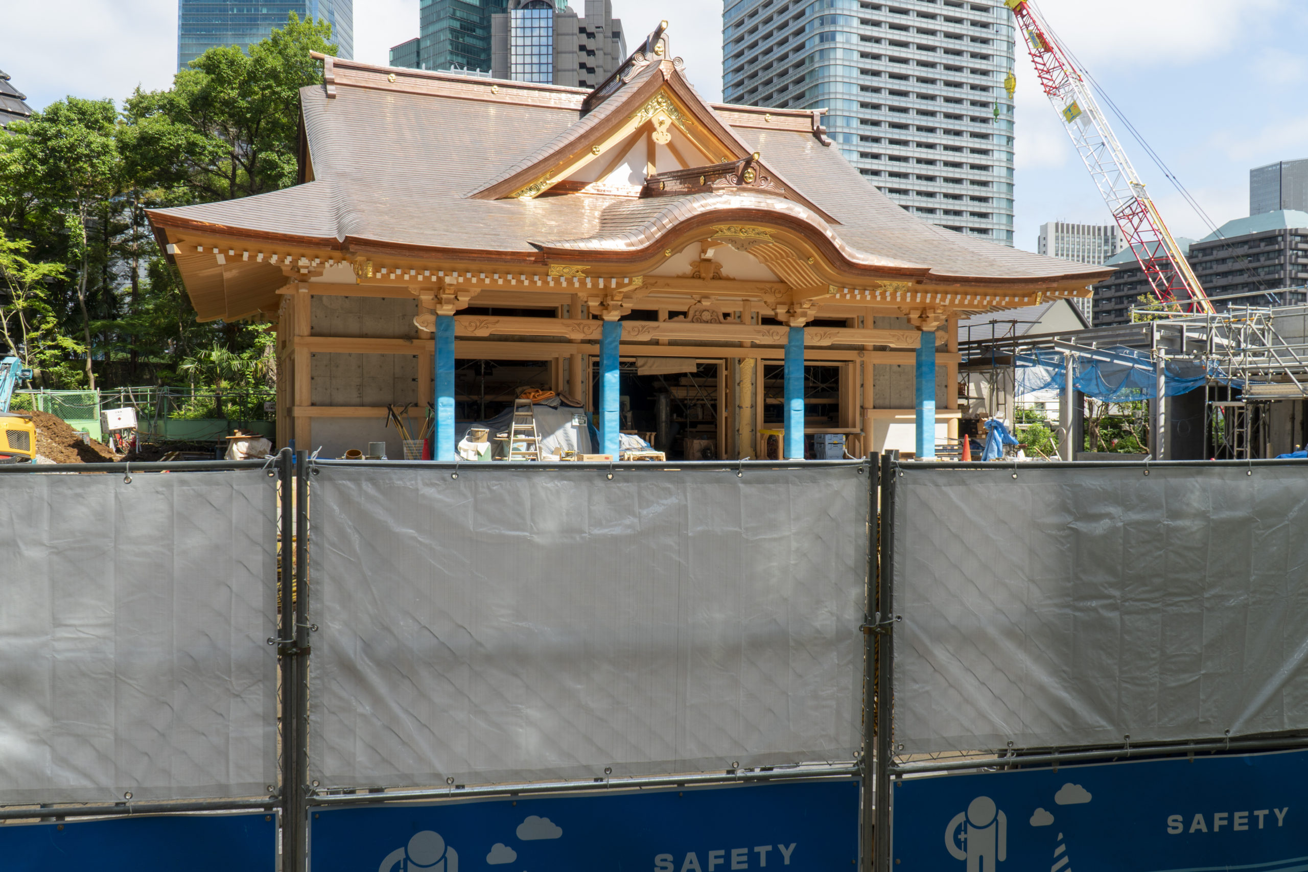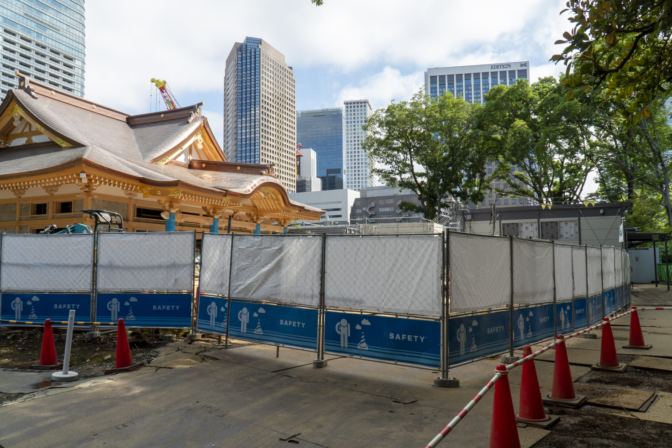 工事は順当に推移しており、この度外構工事が始まりました。それに伴い境内が非常に狭くなっておりますので、ご参拝のみなさまには大変ご迷惑をおかけしますが、足下にご注意の上ご参拝いただきたくお願い申し上げます。