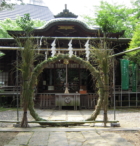 ホーム › 過去の情報 › 茅の輪 平成20年6月17日 茅の輪 夏越の大祓に向け、社殿前に茅の輪(ちのわ)を設置しました。 茅の輪 茅の輪とはかや草で作られたもので、夏越しの大祓の時に、それをくぐって、疫病や罪穢を祓うものです。左まわり・右まわり・左まわりと、八の宇を書くように三度くぐります。 関連記事 明けましておめでとうございます 夜間照明中止のお知らせ 稲荷社二の午 平成20年例大祭 平成22年 稲荷社二の午祭 夏越の大祓 平成20年氏子各町会祭礼行事のお知らせ